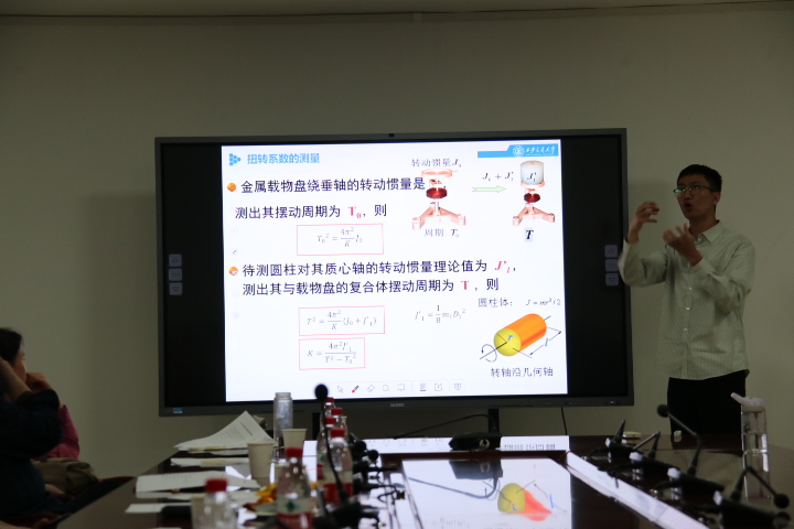 基础物理课程方面专家为评审专家,并且吸引了30余位青年教师观摩学习比赛。在随后的比赛中,四位参赛教师分光计、密里根油滴、转动惯量为主题,从课程思政、教学设计、实验的原理、实验操作等多方面展示了物理实验课程的教学过程和教学思考,评审专家从教学设计、教学语态、多媒体展示、课程思政等多方面对青年教师授课进行了全方位的点评和指导。