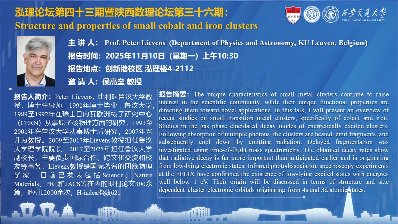【泓理论坛第四十三期暨陕西数理论坛第三十六期】—— Structure and properties of small cobalt and iron clusters