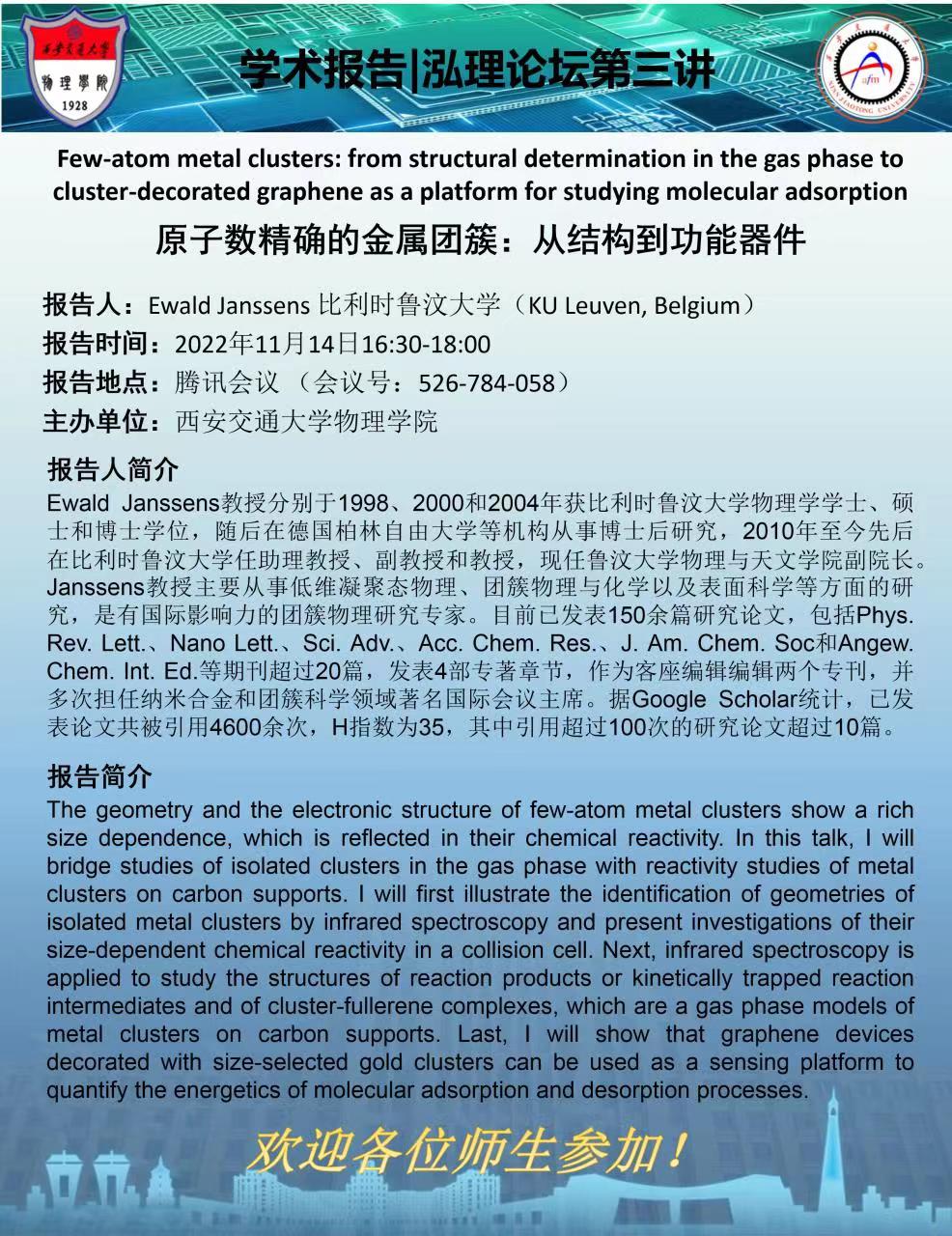 【泓理论坛】第三讲——Few-atom metal clusters: from structural determination in the gas phase to cluster-decorated graphene as a platform for studying molecular adsorption