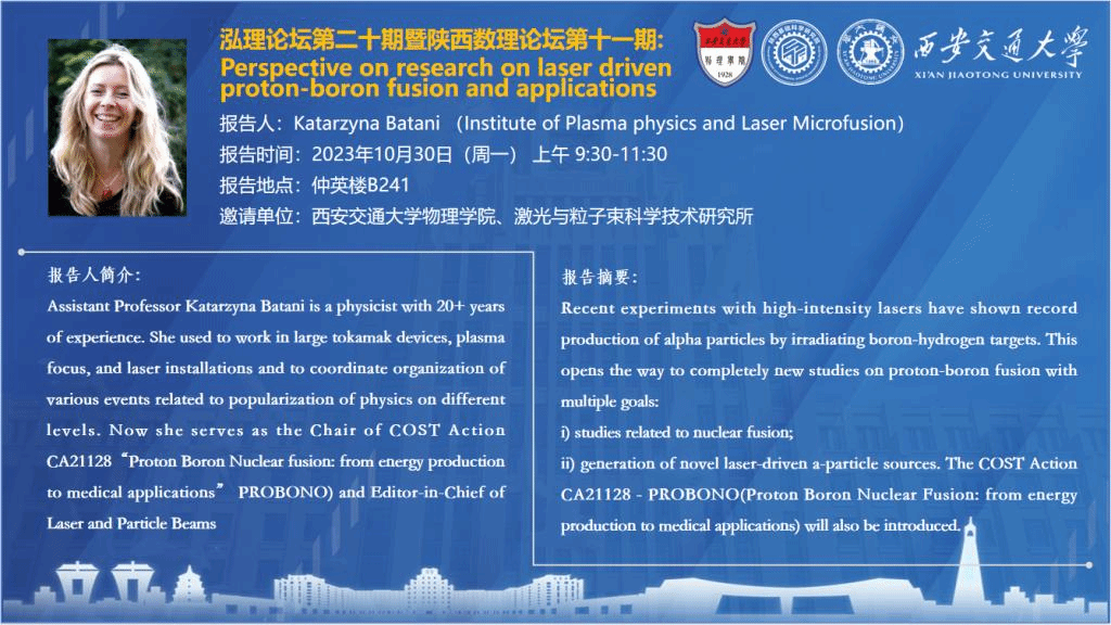 【泓理论坛第二十期暨陕西数理论坛第十一期】——Perspective on research on laser driven proton-boron fusion and applications