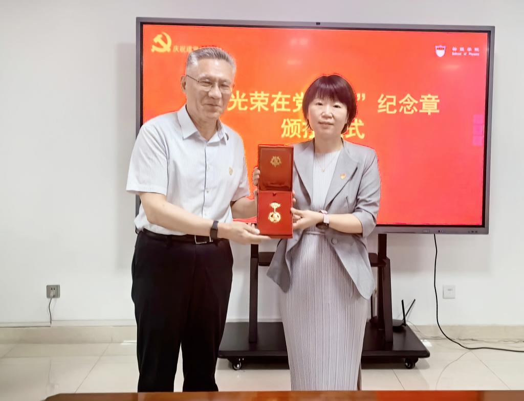 党委书记张莹介绍王小力教授的基本情况并向王老师颁发了“光荣在党50年”纪念章。她指出王小力教授在党奉献50年,躬耕教坛四十余年,始终不忘初心,为党育人、为国育才,为强国建设培养了众多优秀人才,为高等教育事业以及西安交大和拷贝漫画