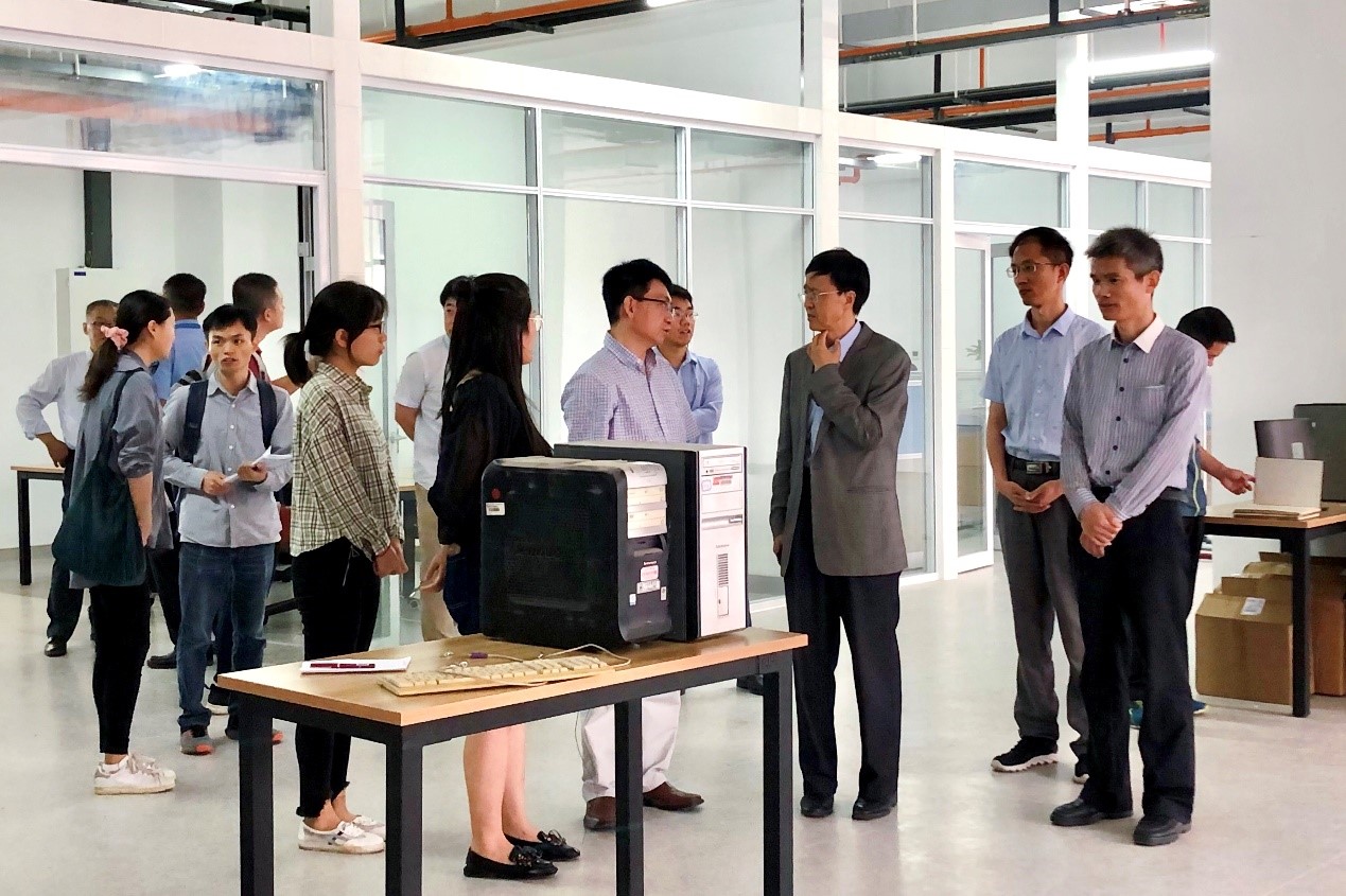 赵军武副书记带队实地考察3个研究所实验平台整体投入使用情况、文化内涵建设成果、师生工位利用情况等。高宏院长系统汇报了创新港平台搬迁建设情况、搬迁中存在的问题与解决措施、各研究所的文化建设及“科创月”筹备情况4个方面的工作。