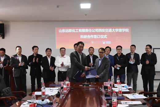 座谈会上理学院段新华教授与山东远联化工有限责任公司常领山董事长签订了合作协议和意向书。与会的教师代表及企业代表就项目下一步的合作进行了交流发言。