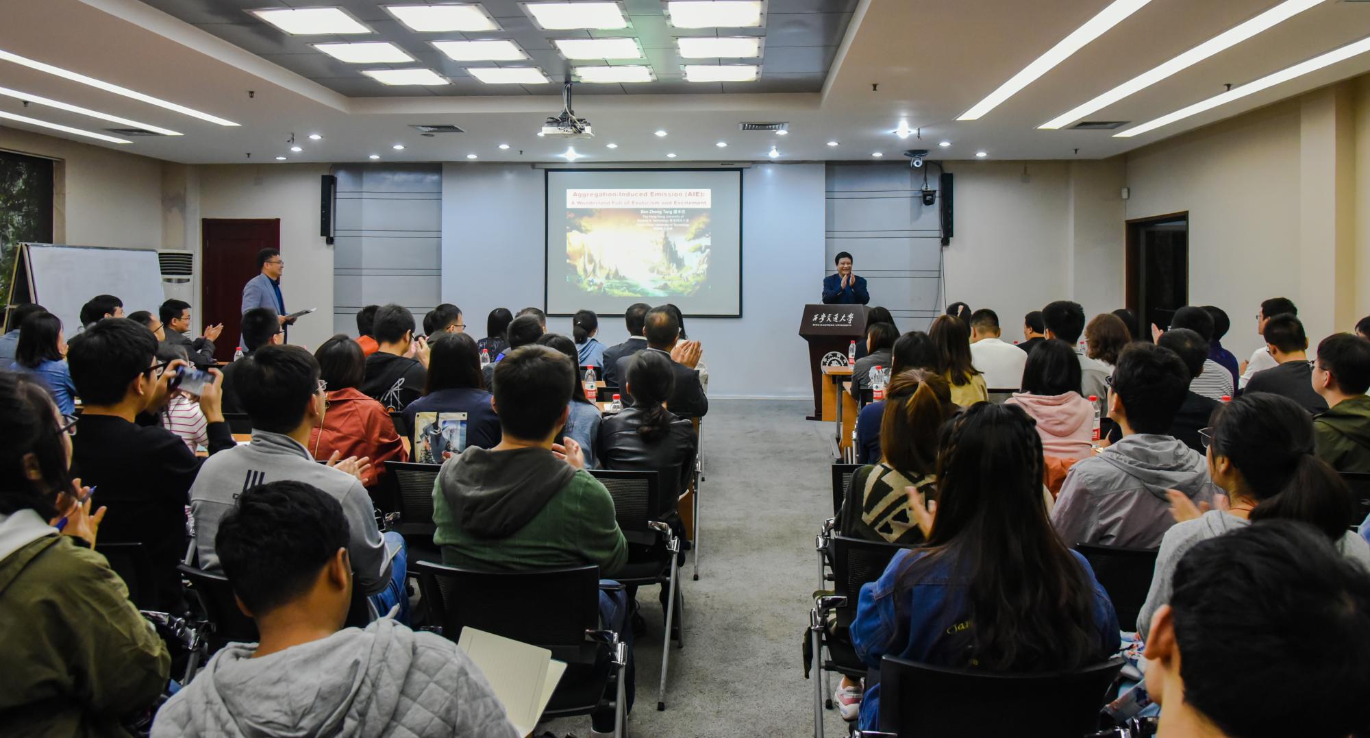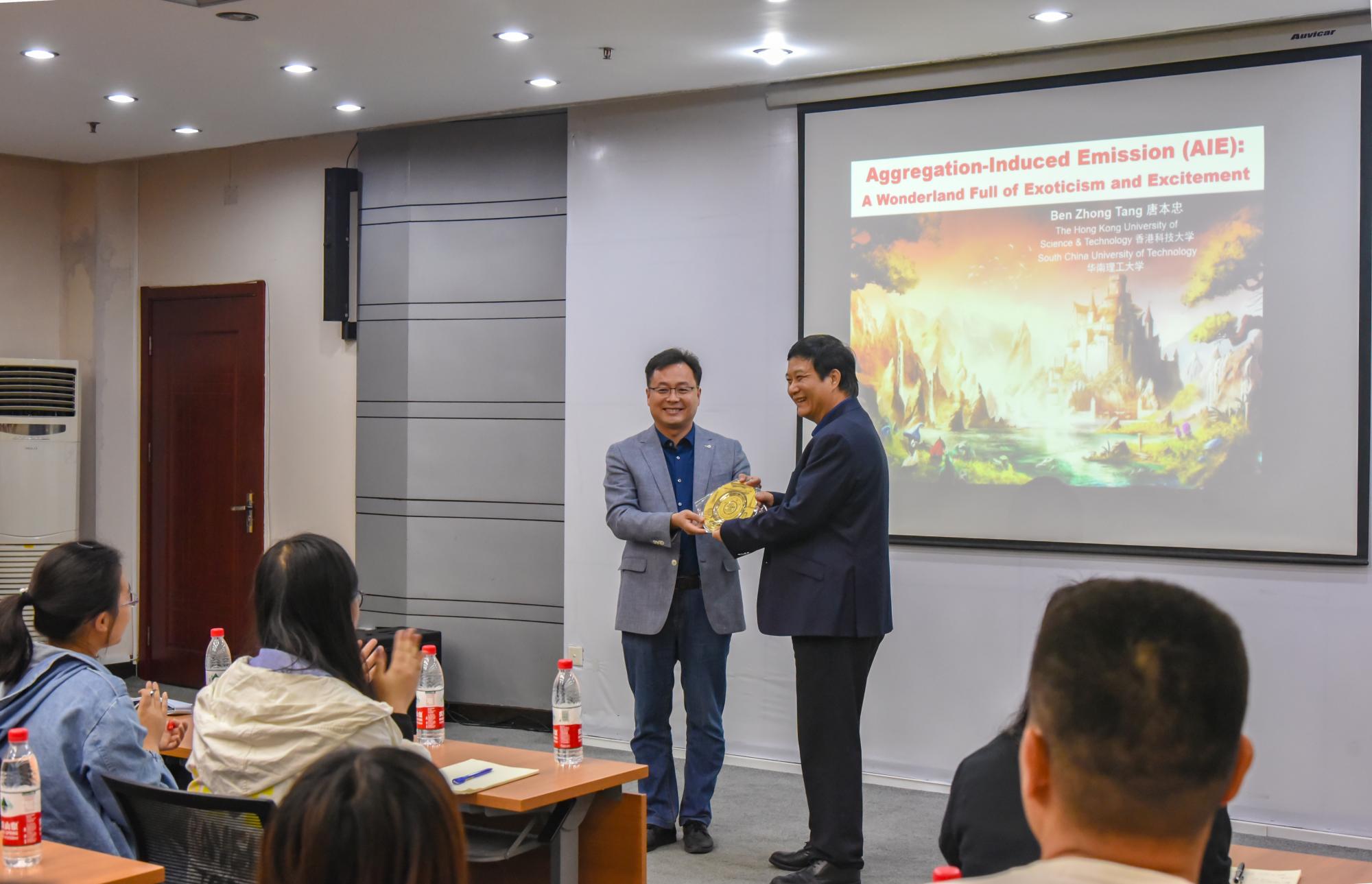 科学馆207会议室进行了题为“Aggregation-Induced Emission (AIE): A Wonderland Full of Exoticism and Excitement”的学术报告。报告会由理学院副院长赵永涛教授主持,理学院副院长张志成教授以及学院相关教师和研究生等参加了会议。