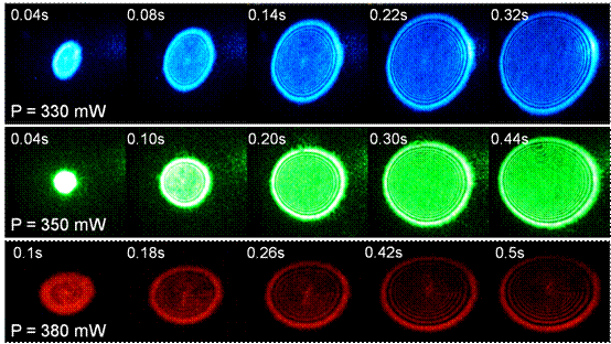 量子光学研究组王文慧讲师与中国科学院物理研究所合作通过空间自相位调制,在具有帯隙的MoSe2层状量子材料中实现了光诱导的电子相干性。不加光场时,MoSe2片层悬浮于液体中,电子完全独立,相互之间无相位相干。用激光照射时,片层中电子波函数的相位完全受入射光场调控,使得片层内部电子相位相干。这种电子相干性是一种光诱导的电子集体行为,不仅在片层内部出现,在有序排列的片层之间也会出现。通过对空间自相位调制散射形成的衍射环的观测,可以得到材料的三阶非线性系数。