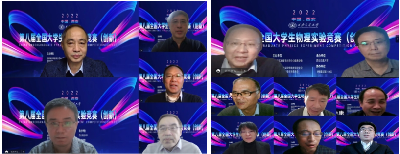 由于疫情原因,此次比赛以线上方式进行,经过一天半的激烈角逐,比赛于11月27日下午落下帷幕。决赛闭幕式上,竞赛仲裁组张朝晖教授,命题组组长施建青教授,自选组组长乐永康教授,讲课组组长李金环教授以及评审专家代表樊代和教授分别对本届竞赛进行了点评,对组委会的工作高度认可,并充分肯定了参赛选手的专业素养和精神风貌,通过这一赛事必将促进各高校进一步加强学生实践能力的培养,深化物理实验教学改革。