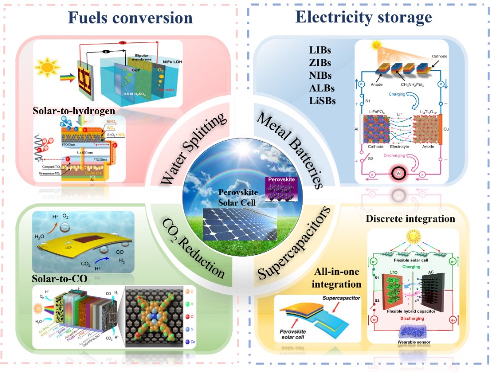 的梁超研究员、杨生春教授与澳门大学的邢贵川教授合作,系统总结了钙钛矿太阳能电池驱动的电化学燃料转换、电催化还原和电能存储系统的集成于发展现状。重点介绍了基于钙钛矿太阳能电池的新兴光电化学器件开发,包括自充电电池组、无辅助太阳能水裂解/CO2还原等领域的研究进展,并对该领域所面临的科学挑战进行了分析和展望。上述工作近日分别以(Perovskite Solar Cell Powered Integrated Fuel Conversion and Energy Storage Devices)和(Recent Progress in Perovskite-Based Reversible Photon–Electricity Conversion Devices)为题分别发表在国际知名期刊Advanced Materials和Advanced Functional Materials。论文第一作者为 拷贝漫画