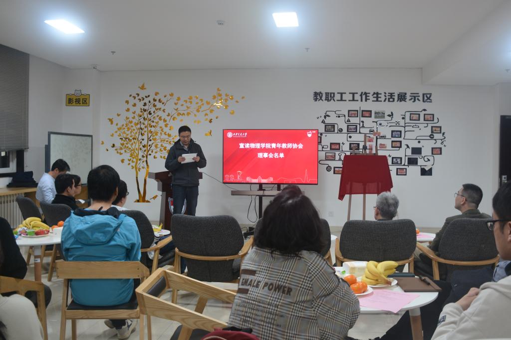 青年协会理事长杨涛在发言中感谢学院的肯定和信任,表示青年教师协会要做好各项服务工作,加强各方面交流碰撞,拓展交叉融合,通过举办学术报告会、经验分享活动、教学研讨活动等,广泛建立交流联系,帮助青年教师在教学科研、生活学习中快速进步。