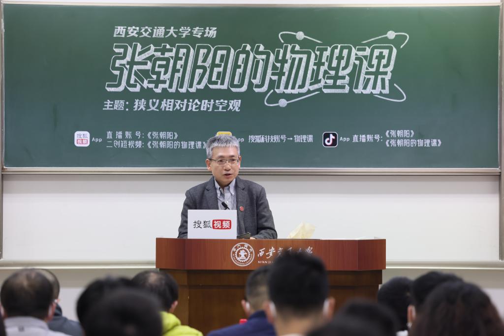 课堂上,张朝阳为交大师生带来了主题为“狭义相对论时空观”的知识内容,利用量子力学等知识带领大家“硬核推导”时空的洛伦兹变换,回顾“狭义相对论”并向“广义相对论”进军。本次授课以深入浅出的讲解方式,通过物理学解释生活现象并分析现象背后的根本原因,与大家一同探寻物理之趣。