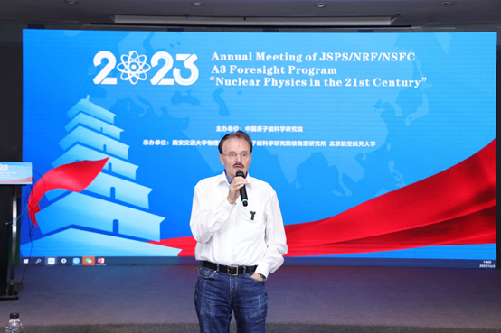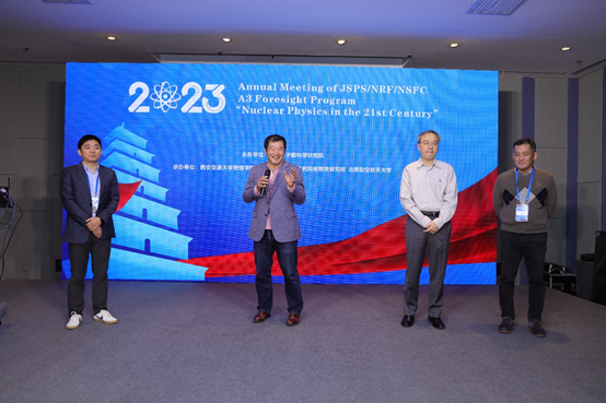 副院长、当地组委会主任赵永涛教授主持,A3 计划“21 世纪的核物理”中日韩负责人北京航空航天大学孙保华教授、日本理化学研究所Tomohiro Uesaka研究员、大阪大学Nori Aoi教授,以及首尔基础科学研究院Kyung Yuk Chae研究员分别致欢迎辞,表达了对当地组委会的感谢以及对西安的喜爱和对本次会议的期待。