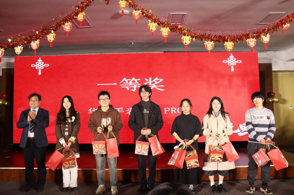 晚会现场座无虚席师生热情高涨。学院不仅为每位观众准备了礼品,以及美味的小零食,还加入了令人期待的抽奖环节。现场抽奖环节由张莹、高宏、赵永涛分别从抽奖箱随机抽取了3个一等奖、5个二等奖、6个三等奖,并由抽奖老师分别现场颁发了奖品。