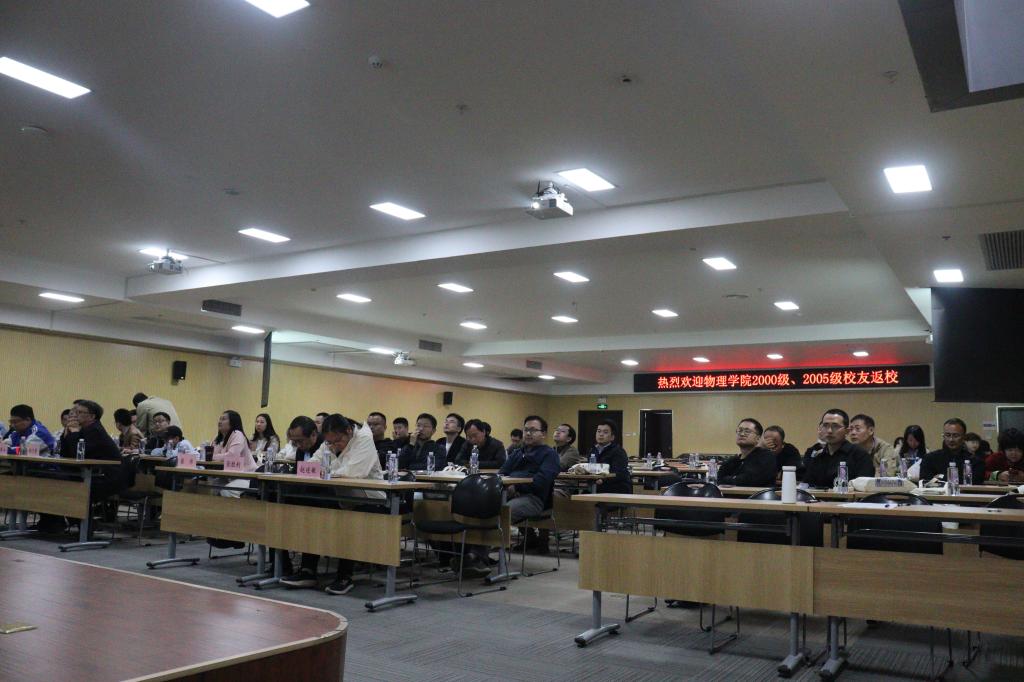 2000级校友代表赵阳、2005级校友代表代海山对学院日新月异的发展表达了衷心的祝贺,他们表示,心中物理大树不倒,必将结出累累硕果,愿竭尽所能回报学校和学院。