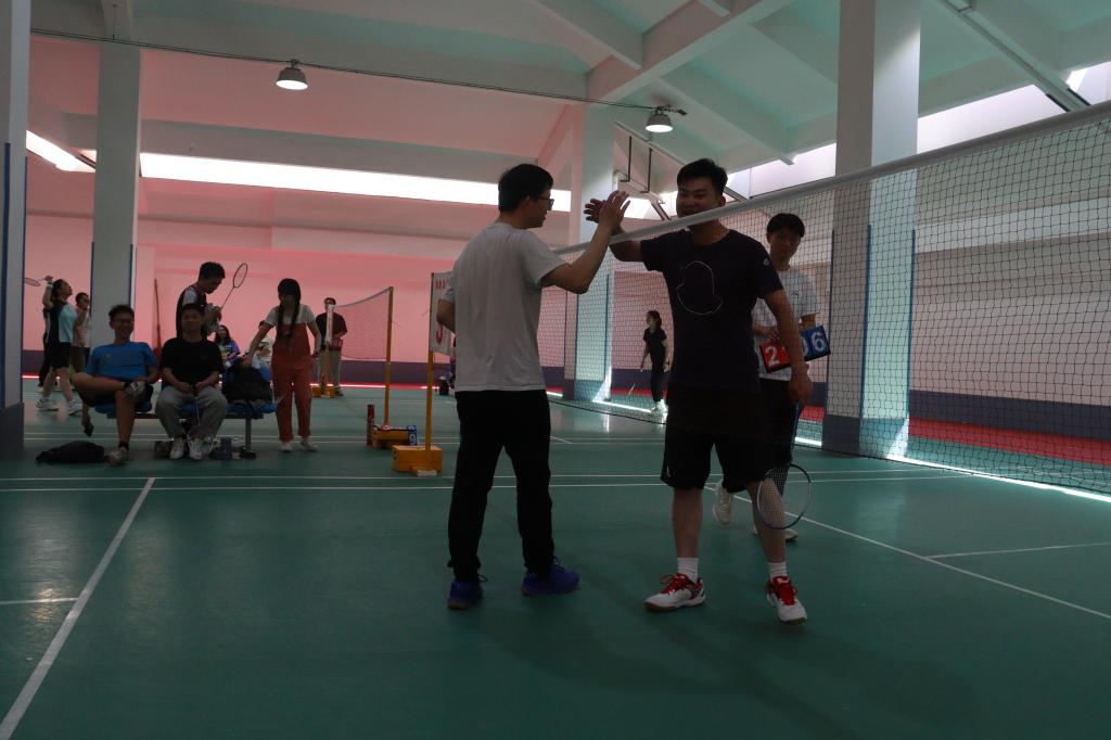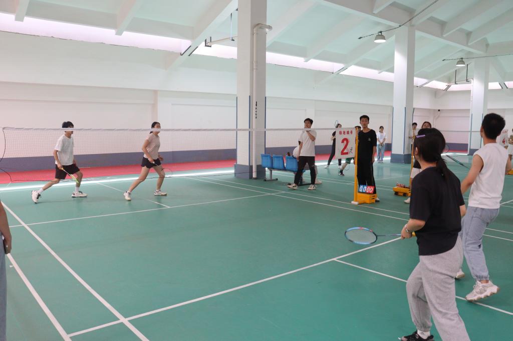 、新闻与新媒体学院、未来技术学院联合举办“良师益友,‘羽’你同行”三院联合师生羽毛球赛。比赛于2024年5月12日在创新港校区2号巨构坡屋顶羽毛球场进行,分为混双、男单和女单三个项目,共吸引63名羽毛球爱好者报名参与。