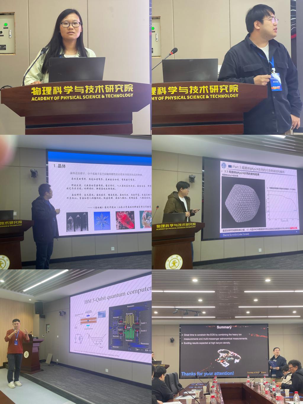 会议第二阶段,参会学者分别从高能物理、天体物理、材料科学、生物物理及量子系统动力学多个科研方向为与会师生带来精彩的学术报告,双方就研究工作中存在的关键问题展开热烈的讨论。