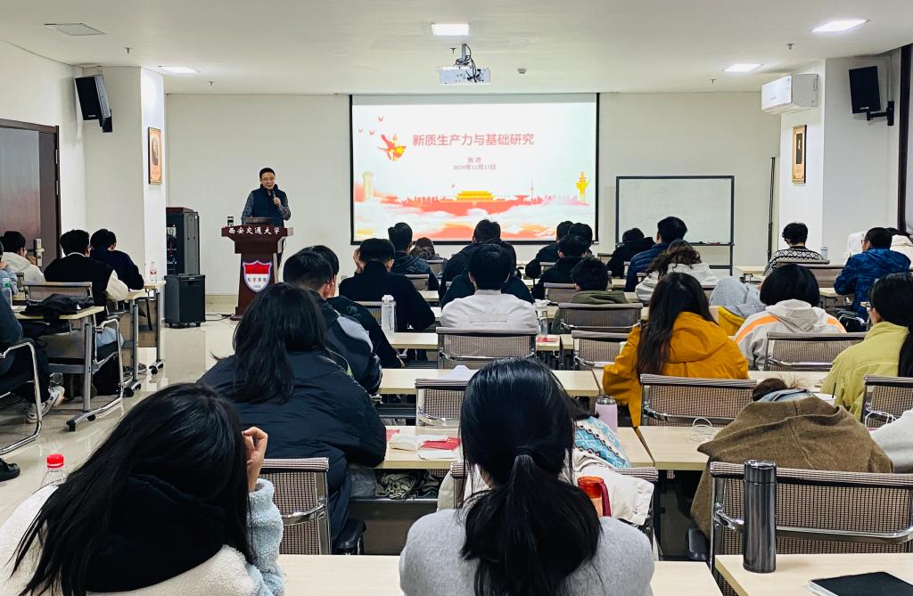 党委副书记张沛教授以其深厚的学术底蕴,深入浅出地阐述了新质生产力的理论精髓与实践要义,并进一步探讨了新质生产力与基础研究之间紧密而微妙的联系。在他勉励在座同志,要在基础研究的广阔天地中勇立潮头,充分发挥先锋模范作用,以实际行动为国家科技进步与经济发展的大潮注入不竭动力,贡献力量。