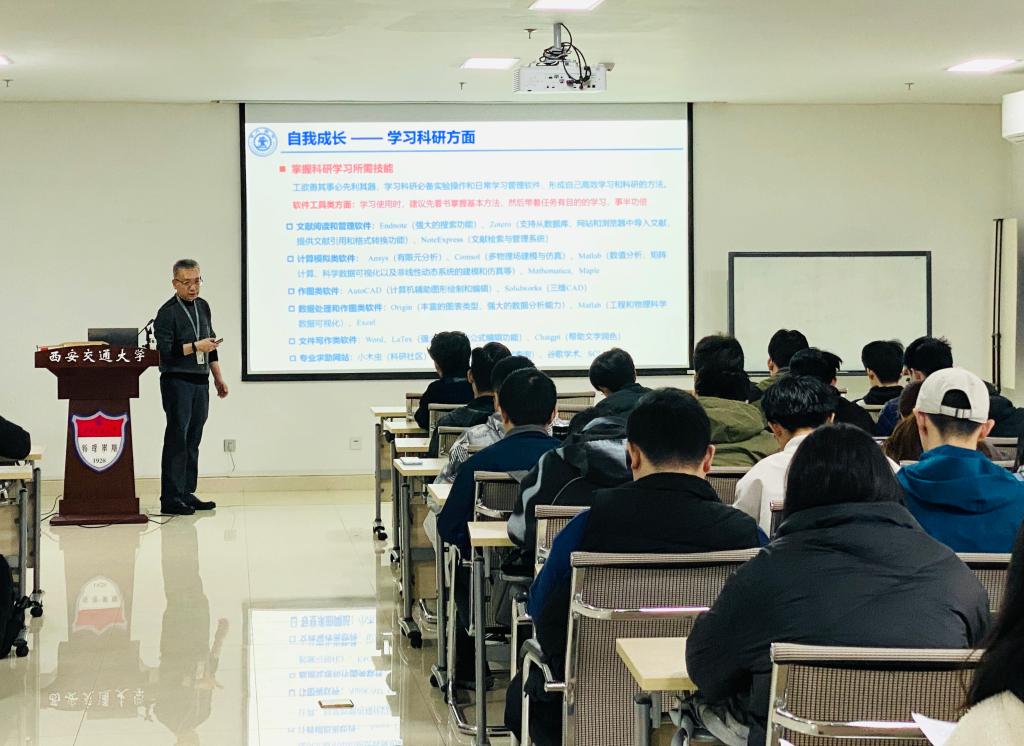 院长高宏教授以“研究生的自我成长”为核心,从国家发展的战略高度出发,深刻阐述了教育、科技、人才在全面建设社会主义现代化国家中的基础性、战略性支撑作用。同时,高院长紧密结合学生学习、科研的实际,利用生动的案例和详实的数据,从学习科研方法、人际交往技巧、身心健康维护以及学术诚信坚守等多个方面,为学生们提供了一套全面而实用的自我成长指南。他鼓励大家要志存高远、追求卓越,坚定不移听党话、跟党走,立志做有理想、敢担当、能吃苦、肯奋斗的新时代好青年。