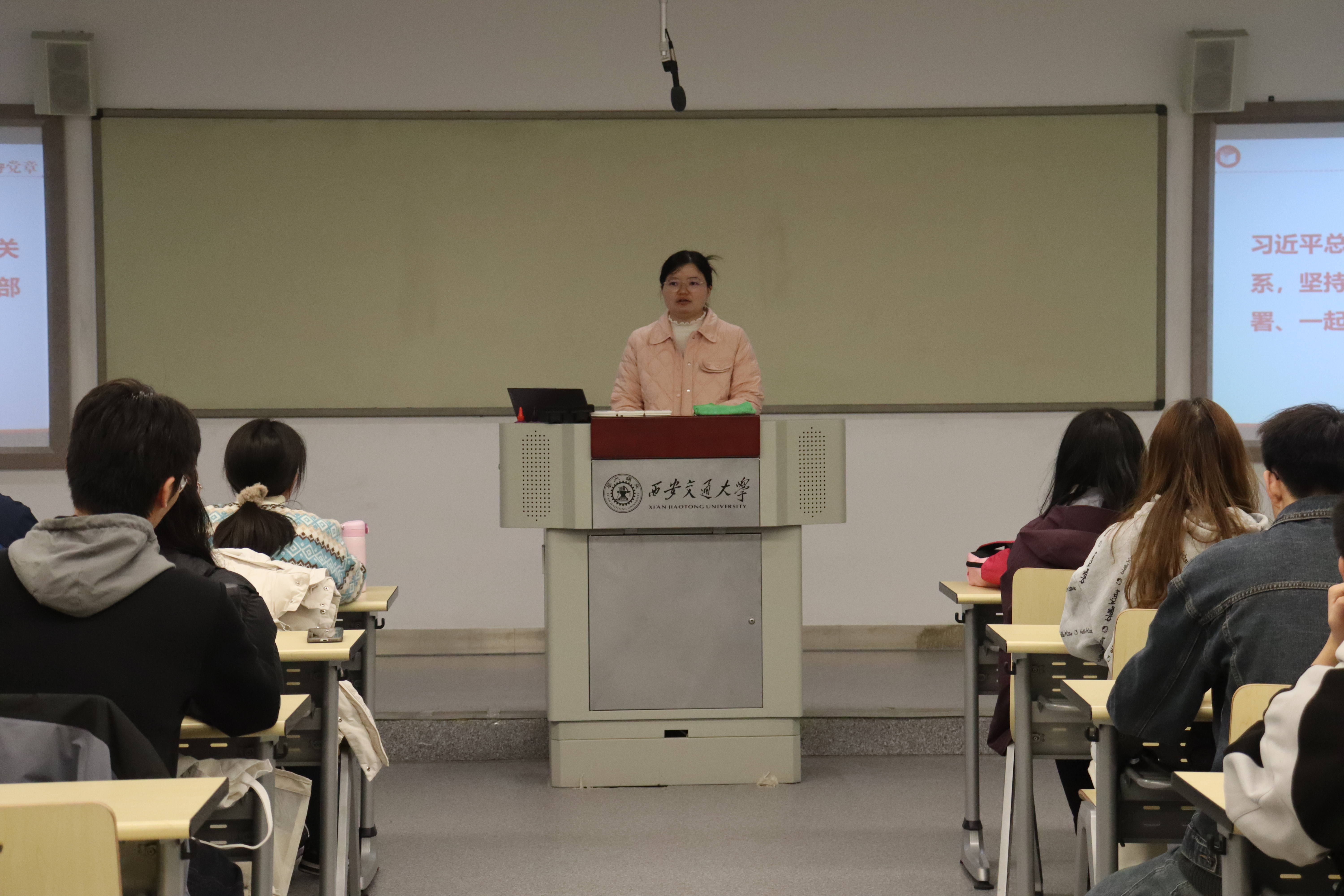 团委书记、辅导员刘文慧同志围绕《中国共产党章程》进行了系统深入的讲解,她详细阐述了党的基本原则、宗旨、纪律以及党员的责任与使命,引导大家深刻领会党章的内容,进一步坚定理想信念。