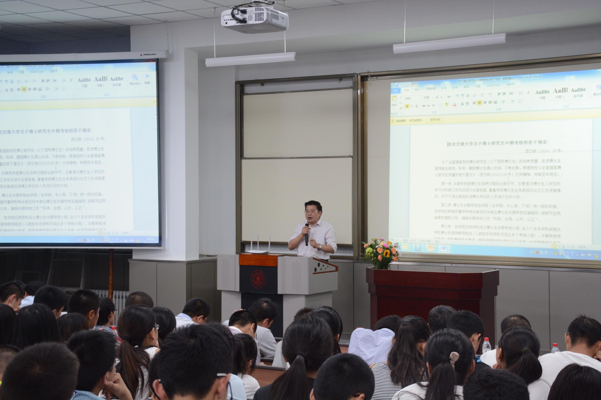 唐玉海副院长介绍了本届研究生的招生以及构成情况,从硕士博士生中期考核要求、毕业授位条件、更换导师以及学术诚信四个方面解读学校和学院研究生教学管理的相关政策和规定,希望大家一定仔细阅读和学习相关文件。