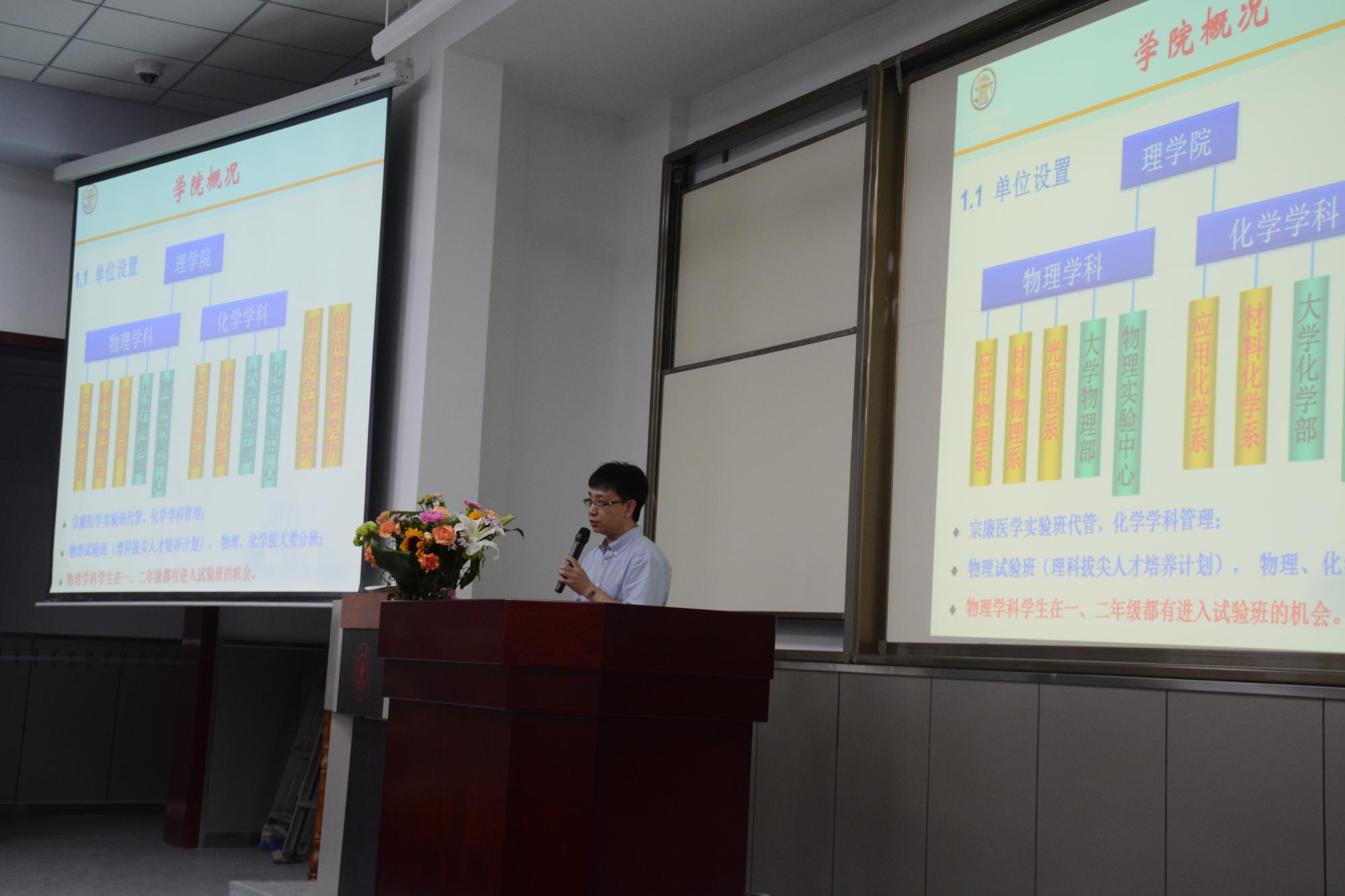 高宏副院长介绍了理学院的基本情况,鼓励同学们在学习科研上发挥自己的力量,结合典型案例,告诫大家切勿沉迷于手机及网络游戏;同时展示了近两届理学院本科生的毕业就业情况,进行了简要分析,对大家的职业规划进行了有效指导,希望大家尽早规划自己的大学生活,为自己谋划一个光明的未来。