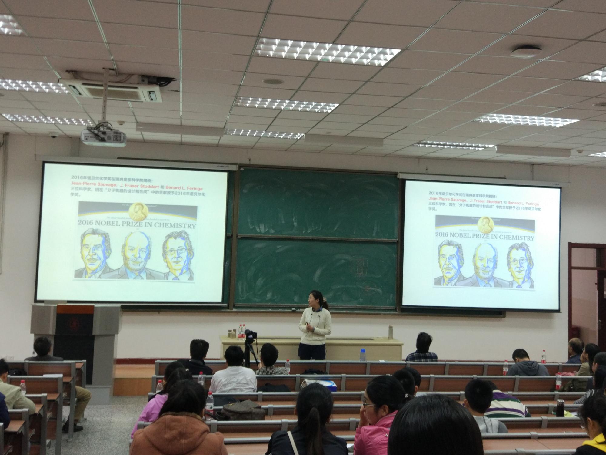 10月13日下去4:10,理学院物理学刘博老师与化学焦佼老师在中-3225室进行了一场题为“拓扑时代的来临—奇妙的拓扑相变和拓扑相”和“分子机器的诞生与发展”的学术报告,深刻解读诺奖的科学奥秘。理学院师生齐聚一堂,聆听报告,交流研讨。