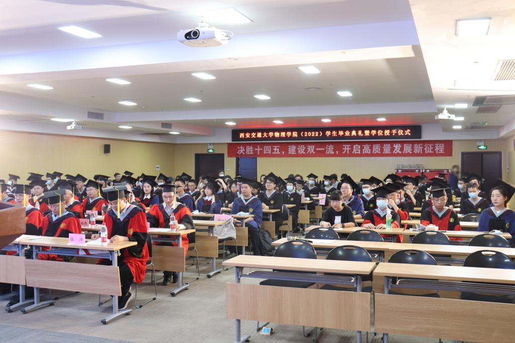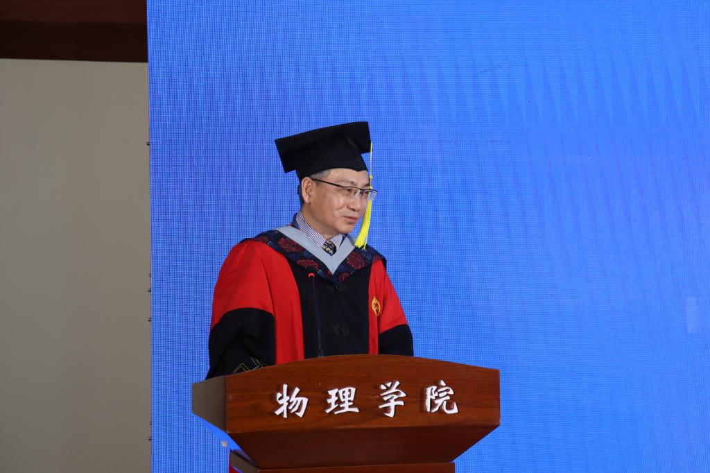 最后高宏院长在讲话中表示同学们马上就要离开母校,踏上人生路上的新征程。他鼓励同学们要以国家民族复兴、人民生活幸福为己任,与祖国共命运,同成长。他希望2022届毕业生承载着交大物理人的梦想,在祖国大地上绽放属于自己的光芒,走向卓越,开启全新的人生征程!