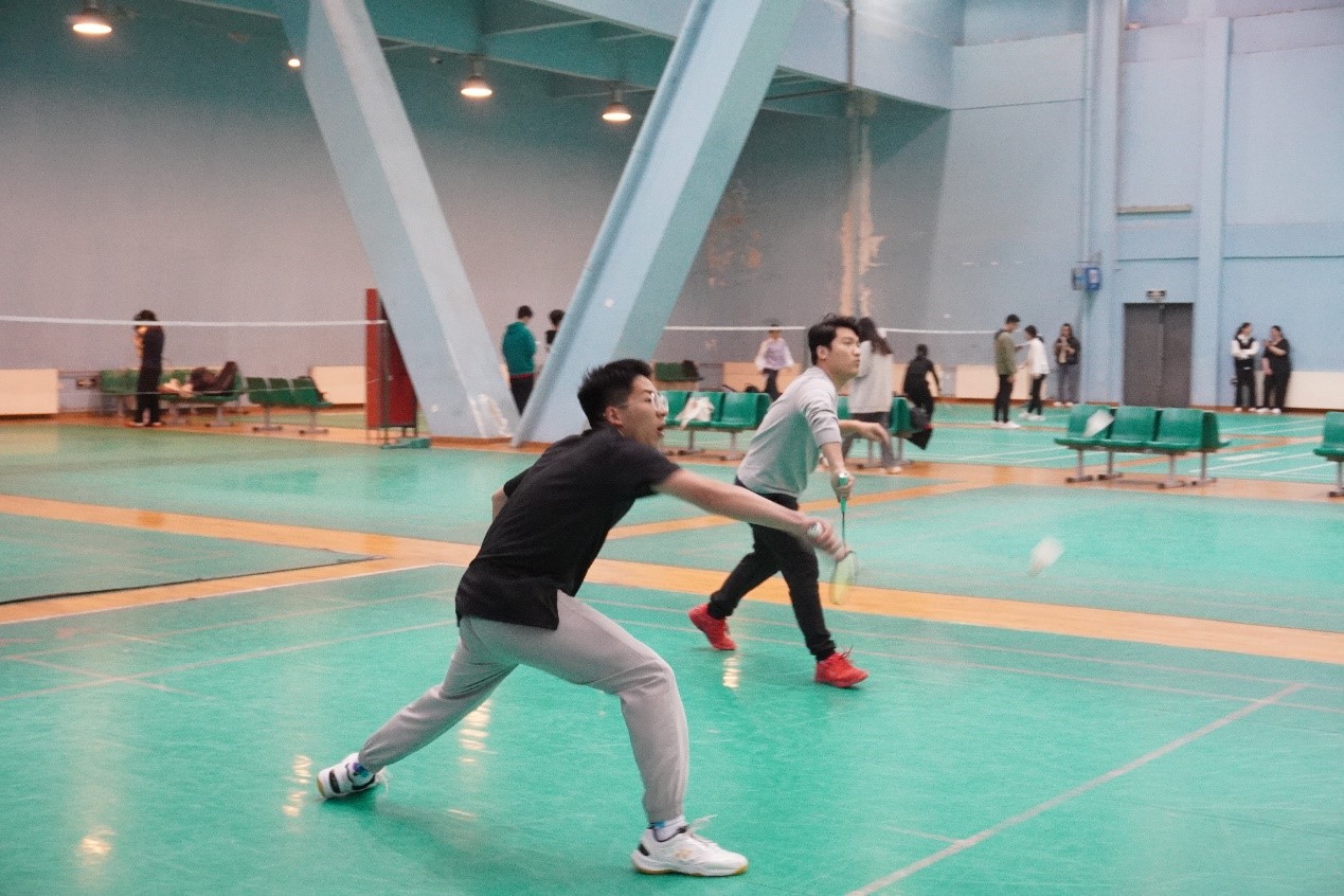 在男子双打比赛中中,人文学院毛乐之和何国喜默契配合,快速反应,力量十足,在一场场节奏快速、攻防激烈的比赛中力克群雄,击败了其他对手,获得了冠军,苏旭昌、李文聪组合和吴欢、白一鸣组合的比赛也充满着力量和炫技,给观众们留下了深刻印象。