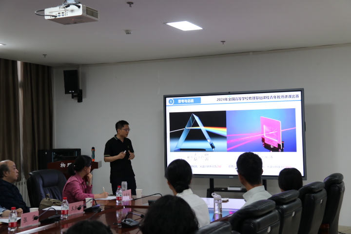 全国高等学校物理基础课程青年教师讲课比赛是教育部高等学校大学物理基础课程教学指导委员会、教育部高等学校物理学类专业教学指导委员会和中国物理学会物理教学委员会,为进一步激发和鼓励青年教师投身物理基础课程教学,提升教学水平、推动 教学改革、交流教学经验,提高人才培养质量专门举办的讲课比赛,比赛分省级预赛、地区复赛和全国决赛三个阶段进行。本次校内比赛是为了即将举行的省级预赛做好准备。
