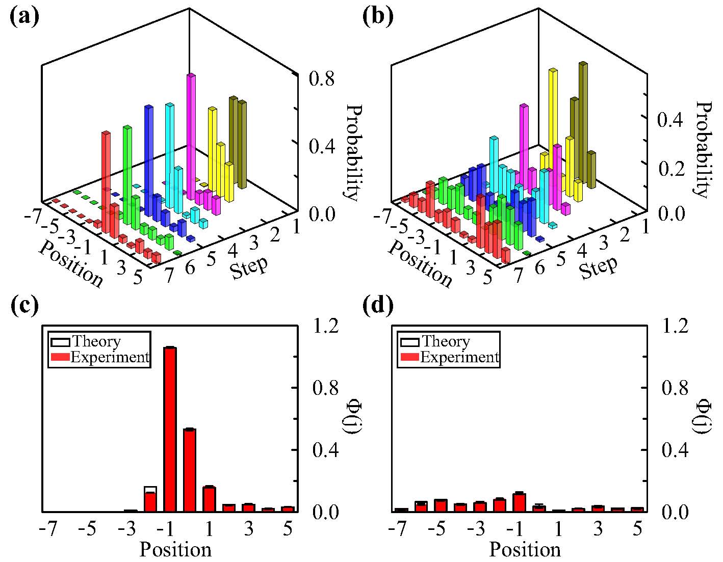 实验上,研究团队搭建了手性破缺的非厄米单光子量子行走系统,通过畴壁结构中光子拓扑边界态的测量,构建了光子拓扑边界态与相应体拓扑不变量间的对应关系,进而确立了这一系统中的新型体-边对应关系,为进一步研究新奇非厄米拓扑现象,架构对称性与非厄米拓扑物理间的桥梁提供了新的契机。